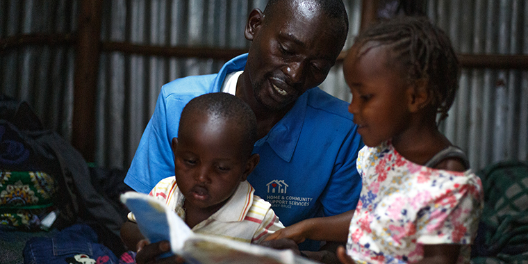 Antony is a single parent raising two children, Wangari*,3, and Njuguna*, 2.Their mother left when the youngest was four months old. At first, Antony was scared and nervous because he knew nothing about raising young children, but now he bathes, washes their clothes, cooks, feeds them and does the household chores without a fuss.