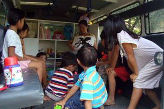 “We do not have a permanent venue or classroom where we conduct our classes" says Remia, the SOS Kindergarten Head Teacher. "Sometimes, we hold our classes either in the tattered chapel or in an opened-sided waiting shed. During rainy season, we mostly do it inside our SOS vehicle. As the children do not have a basic learning background, it is really hard to teach them at first. Most of them do not want to speak and many are very timid and shy. Picture stories, visual and audio-visual materials are of great help to us. We make learning a fun, with lots of games. Eventually, children learn how to read, write and count. They even learn to dance and sing making them more sociable. We enjoy what we do. These children can now compete with our kindergarten pupils in academic and extra-curricular activities,” Remia says proudly.