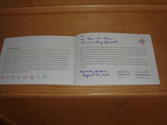 The UN Secretary-General also assured Mr. Pichler of his commitment to supporting the adoption of the “Guidelines for the alternative care of Children” at the UN General Assembly in autumn 2009. SOS Children’s Villages International was a leading organisation in the development of this important international framework which has the potential to improve the lives of many million children.