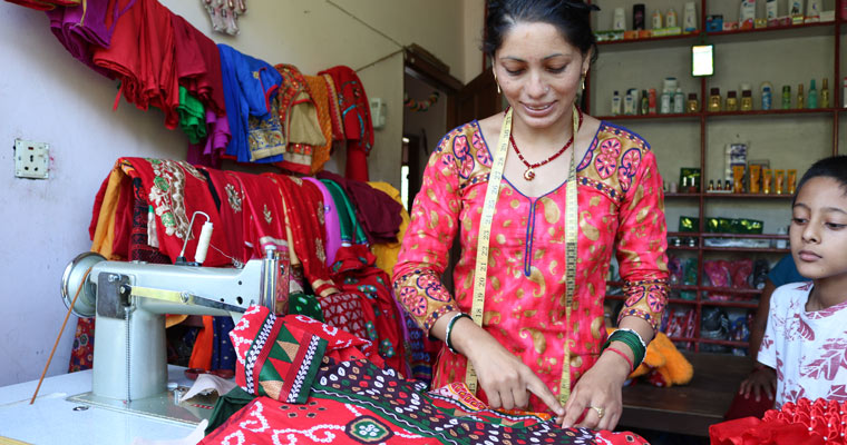One year later, she is optimistic about the business. She runs her shop out of a converted storage area at her sister’s house, earning about 16,000 Nepali rupees (€120) per month, up from the 6,000 rupees (€45) she made as a day labourer. She now wants to learn to make school uniforms, designer dresses and tops so she can earn more.