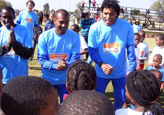 Dutch players Aron Winter (who played as a football midfielder), Guido Albers ('Mister Footvolley'), Pierre van Hooijdonk (striker) and Ruud Krol (defender, and who is also currently the manager of South African Premier Soccer League side Orlando Pirates) joined local coaches and delighted children with their soccer