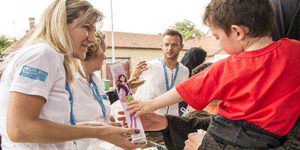 SOS Children’s Villages in Serbia has two mobile teams helping refugees waiting to cross into Hungary. Working in shifts to cover every day of the week, team members provide food, water, toys and counselling, as well as medical and hygiene supplies to those in need. The teams typically include an interpreter.