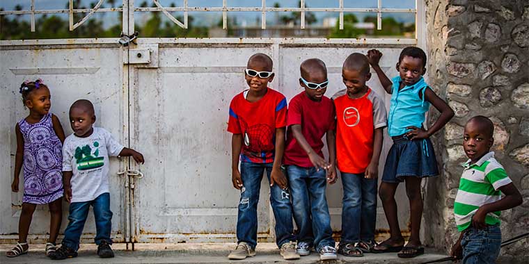 Main photo: Children play outside SOS Children's Village Les Cayes a few weeks after Hurricane Matthew. Photo by Maxence Bradley