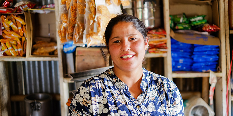 Through the programme, Sumitra’s children are able to attend school, and she has expanded her business and now serves meals.