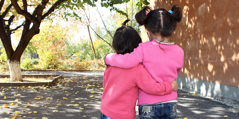 Sisters Rita* and Jenny* are too young to understand what war is, but old enough to stick together and protect each other. Rita is four, and Jenny is three years old. They are from Nagorno-Karabakh.