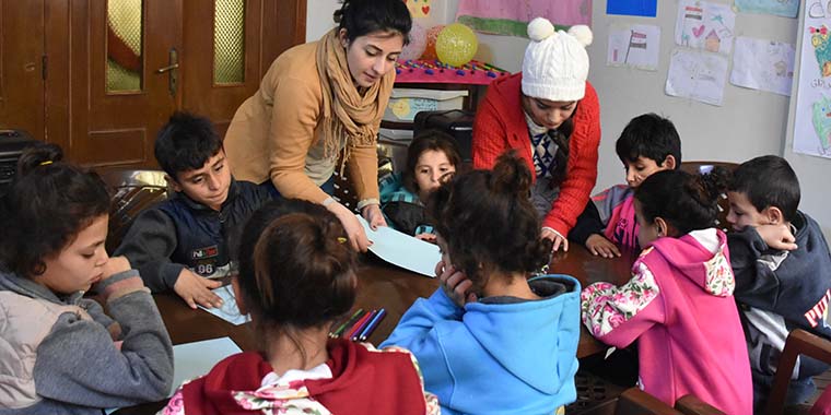 Main photo: Children enjoy activities at the Jaramana Drop-in Centre outside Damascus in early April 2018. Photo by Fares Haj Ebraheem