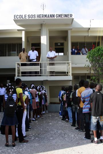 All emergency supplies have been moved, the floors swept clean and school benches reinstated - time to return to the SOS School in Santo. The lines of girls and boys with rucksacks were getting longer as the clock neared 8am. Then the bell rang and the chatter turned into attentive quietness. After observing a minute of silence in commemoration of those who perished during the earthquake, school principal Myrtil Jean welcomed all returning and new pupils.