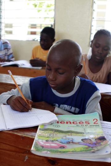 For 11-year old Jerome in grade 6 it was nice to speak with the teacher and with his class mates again. "It is boring without my friends," he told and explained that today he was making drawings and talking about the earthquake.