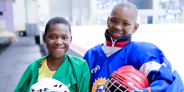 Khaya*, 12, and Pieter*, 13 live for Friday evenings when they get to practice with one of the local hockey clubs in the city. The two boys have become friends on and off the ice and are often found together strategising about the next play or their future.