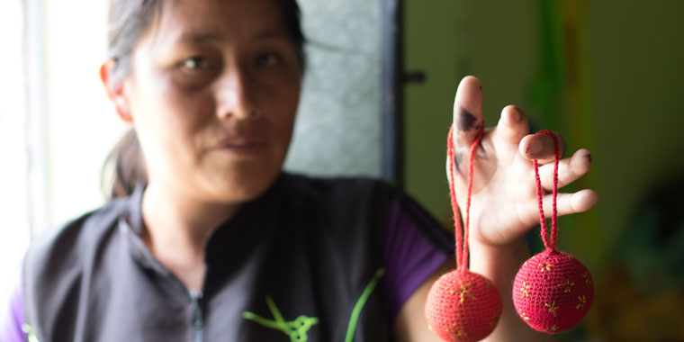 Most women in Ayacucho learned to knit and weave from their mothers. So did Reina, but she was not as skilled as her sister. But one day an opportunity to knit 300 Christmas ornaments arose. She was a young mother and had to provide for her family, so she accepted the challenge – with the help of her sister.
