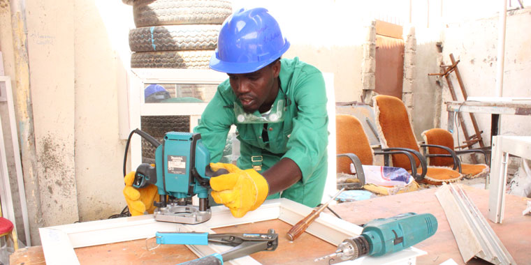 After four months of training, Aaden was ready to enter the job market. Together with other trainees, he received a start-up kit containing a drill machine, safety shoes, hammer, a screwdriver and a measuring tape.