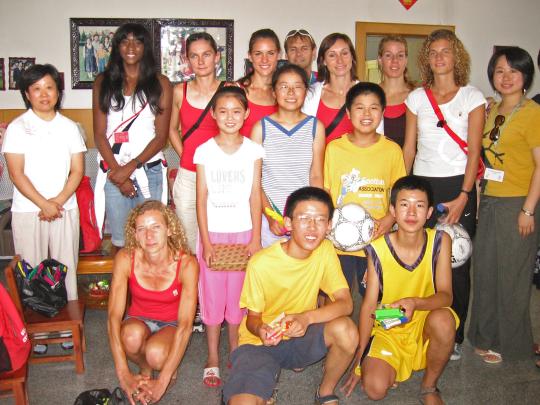 12/08/2008 - Twice European athletics champion Kim Gevaert, one of the stars of the Belgian Olympic team, visited SOS Children's Village Yantai in eastern China last Saturday (9 August) with her team mates. Kim Gevaert, whose career will reach its final climax at the Olympic Games in Beijing, has been an ambassador for SOS Children's Villages Belgium since 2007.