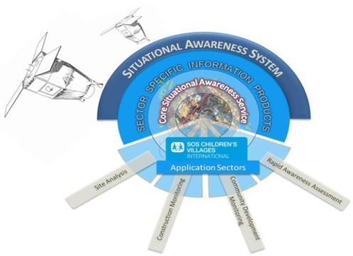 The latest generation of very high resolution satellite data will be applied to serve situational awareness requirements of SOS Children's Villages. A geographic information system approach will allow further analysis, derivation and provision of sector specific information products.